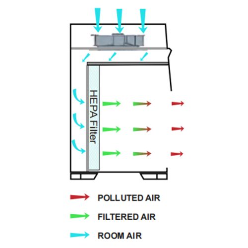 A vertical laminar flow cabinet works by drawing air through a HEPA filter, which removes contaminants, and then directing this clean air downward in a vertical laminar flow pattern onto the work surface, creating a sterile environment for tasks such as tissue culture, sample preparation, or pharmaceutical compounding.