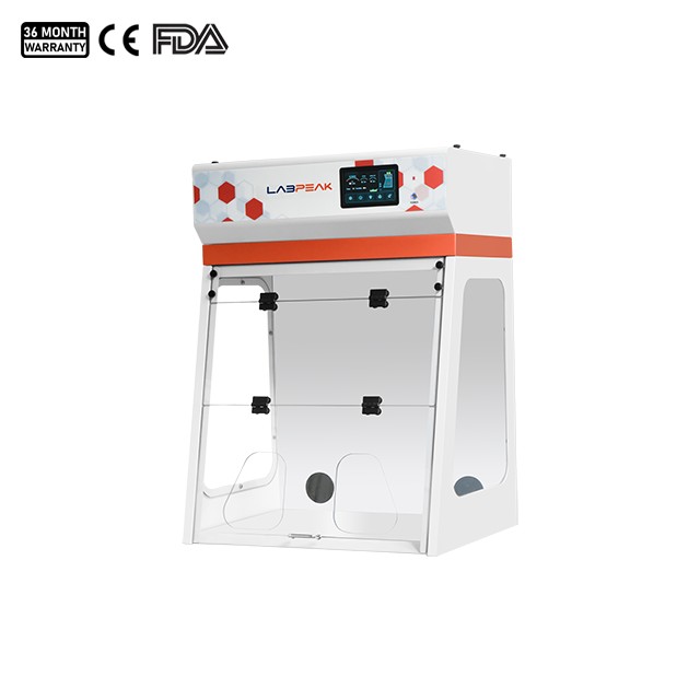 This kind of fume hood employs HEPA filtration to safeguard laboratory staff from particles. Additionally, with optional carbon or chemical filters, it can also shield them from toxic chemical fumes and odors. Renowned for its plug-and-play functionality and portability, the ductless fume hood ensures easy installation and uninterrupted lab work.