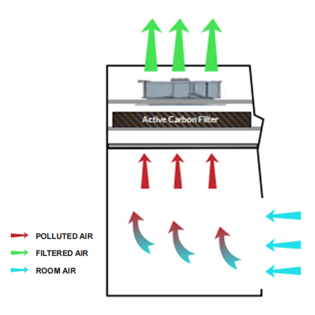 Ductless Fume Hood: Ductless fume hoods utilize filtration systems to capture and remove hazardous fumes, vapors, and particles from the air within the hood. They are suitable for applications where ductwork is not feasible or practical, offering flexibility in placement and installation. However, they require regular maintenance and filter replacement to maintain effectiveness.