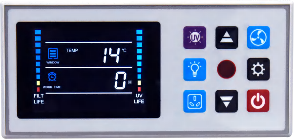 | LCD Display | 304 Stainless Steel work surface | UV Lamp | Active Carbon Filter (Standard) |