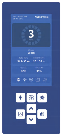 Built-in PP centrifugal blower(2 blowers for FMH-1800DP only); Speed adjustable |
